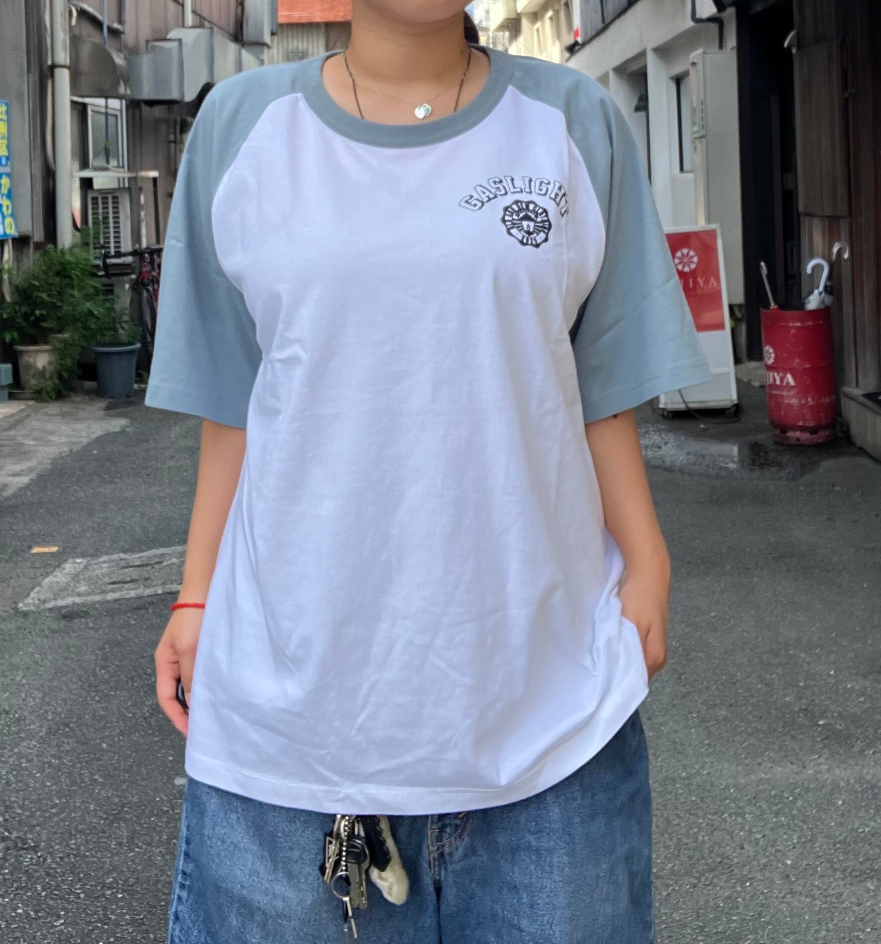 胸元にオリジナルのカレッジロゴがワンポイント入っているラグランTシャツです!