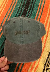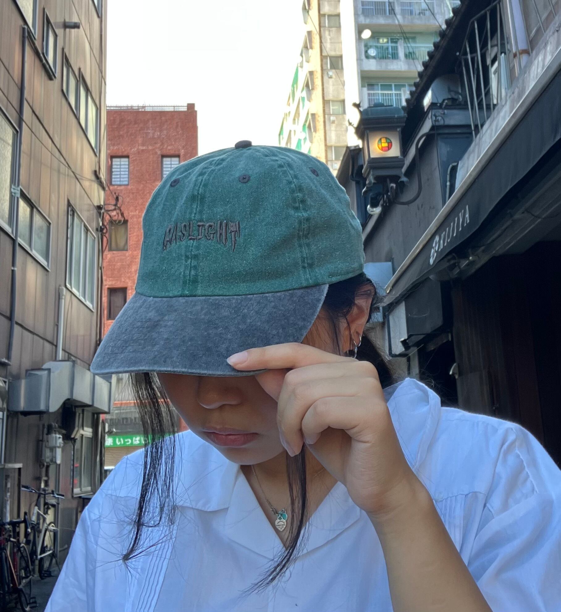オリジナルデザインの刺繍が施してあるキャップです。あまり深くないタイプのキャップでウォッシュがかかっているので古着との相性がいいです。