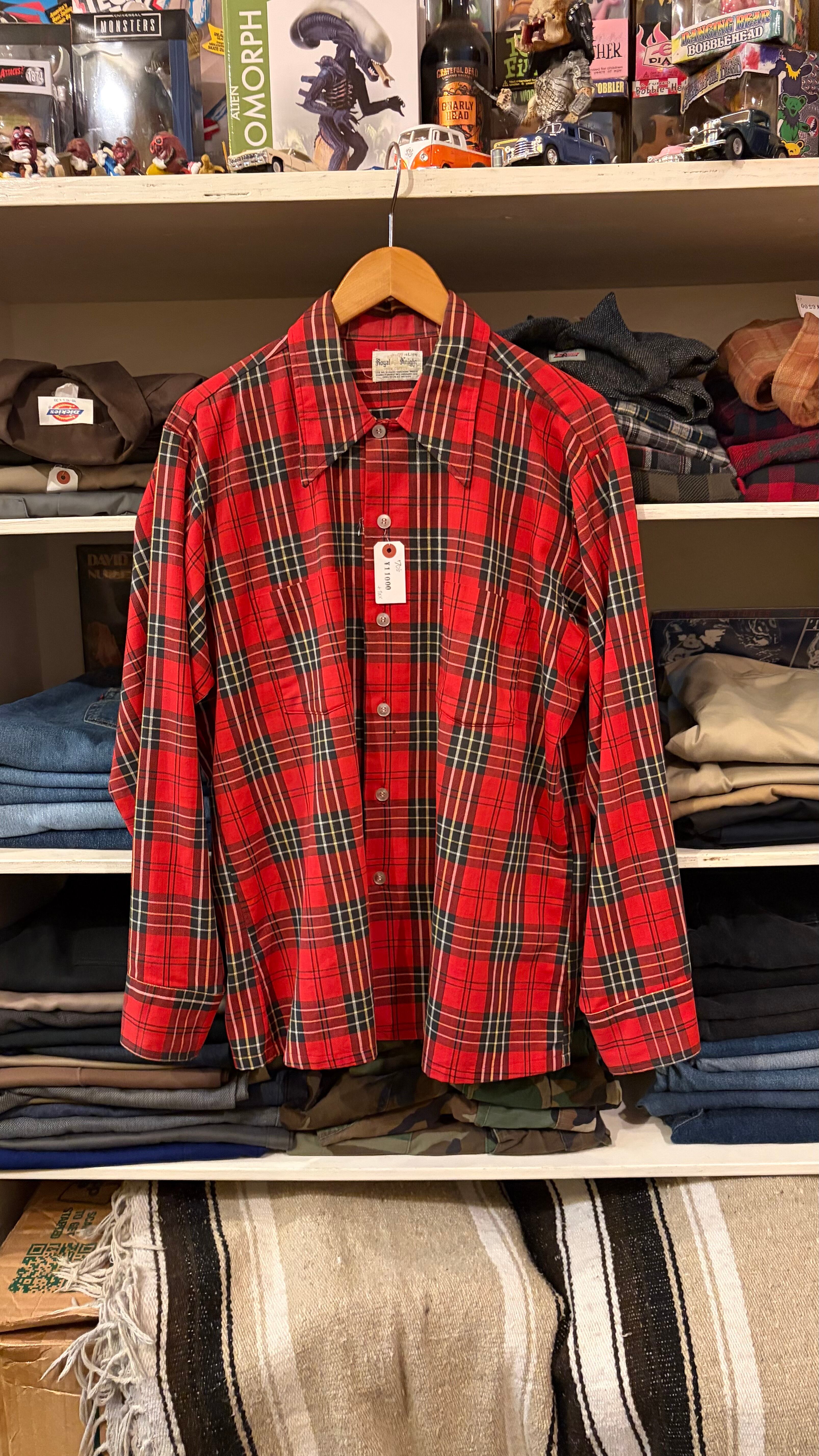 70's cotton check shirts size L